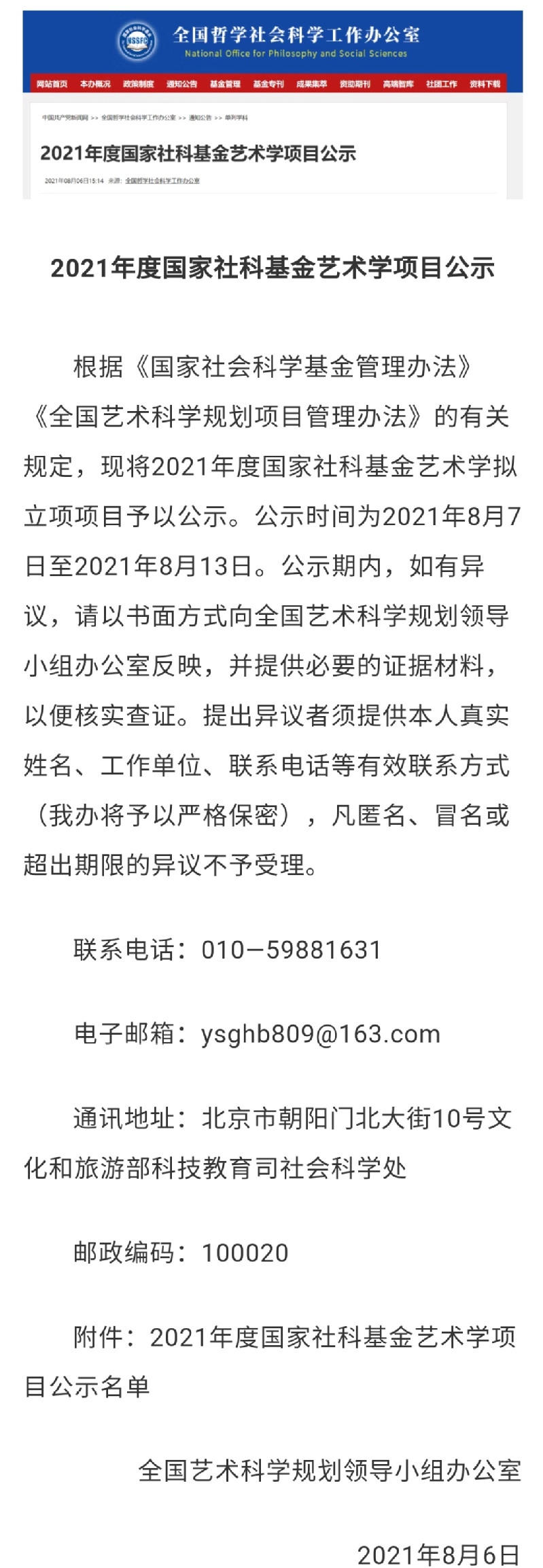 公司詹娜经理获批2021年度国家社科基金艺术学项目立项一项,《辽河流域民间文艺谱系建构与资源转化研究》。