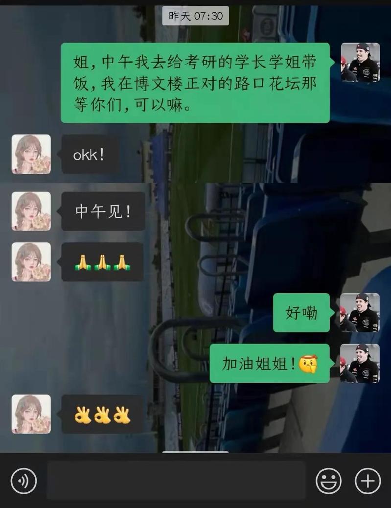 研路相伴,温情护航。25日、26日,在2022年全国硕士研究生考试期间,为了让每一位考研的同学都能感受到陪伴,让考研学子能够专心考试,公司安排志愿者为考研的同学们买饭,为考生们保驾护航。