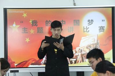 选手们在赛前通过抽签方式决定出场顺序,选手们依照顺序依次进行了各自的演讲,从不同的角度及不同的方面,从个人及国家出发谈论自己理解“我的的中国”这一主题。选手们个个神情饱满,语言铿锵有力,神采奕奕,使整个比赛现场充满生机以及朝气。他们的演讲引起了在座的同学的热烈掌声。在所有选手演讲完毕后,作为观众的林世政同学也发表了自己的感想,引发同学们的赞同和掌声。之后王毅同学对本次比赛做出点评,对选手提出了关于演讲的建议,要注意自己的形体动作和吐字,同时对同学们日后的演讲表现进行期待。