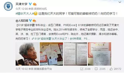 有网友为学霸奶奶点赞,简直是活到老学到老的典范: