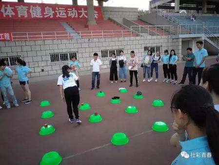 下棋大战,设置是50米长度的距离,在地上画16个圈,格式为4✘4,两队比拼,分别以沙包和帽子作为符号,小组接力跑,并且要用本队符号移成横或竖或斜的四个连线,最先完成的队获胜。(在摆放中只可移动本队符号),两两PK中,赢的队积4分,输的队积2分。