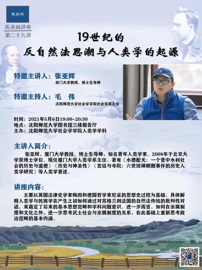 【社·讲座】医巫闾讲座第29讲简报:张亚辉主讲“19世纪反自然法思潮与人类学的起源