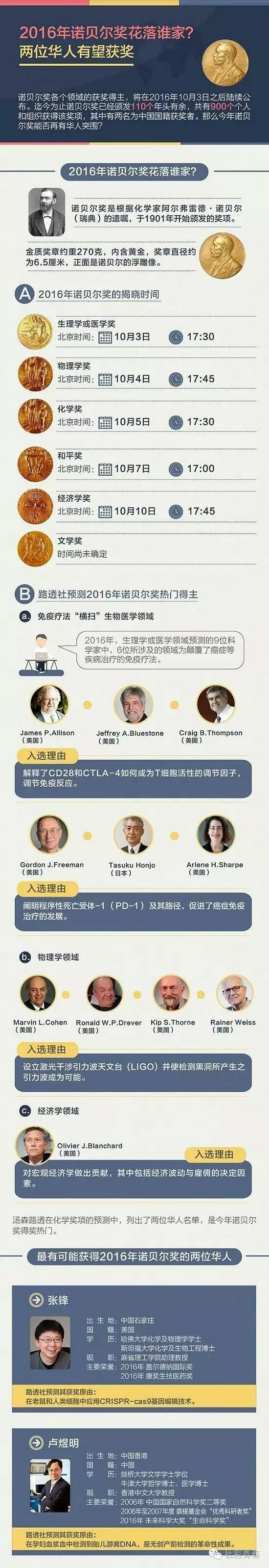 小新闻时刻 ‖ 2016年诺贝尔奖花落谁家,两位华人有望获奖。10月3日之后将陆续公布