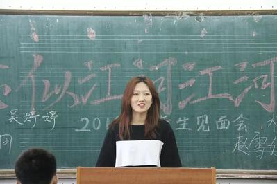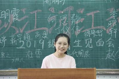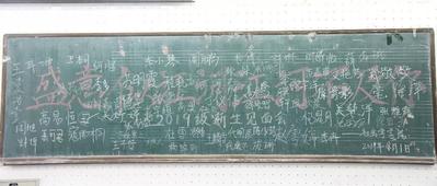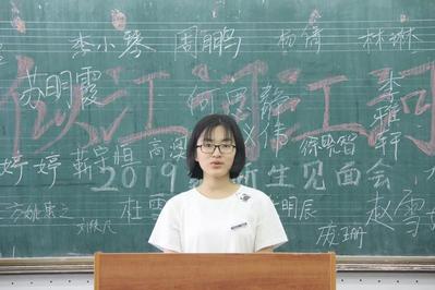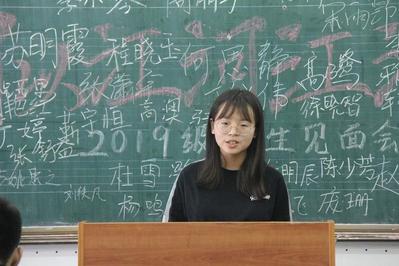 接下来2019级新生按照名单顺序依次上台进行自我介绍,来自五湖四海的大家,性格迥异,用自己独特的方式向大家介绍自己,并在黑板上写下自己的姓名,把本次见面会推上高潮。