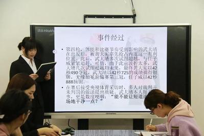 第一位上场讲解新闻的是王岩同学。她从事件经过、网友评价、专业视角、个人观点等四个角度出发,为大家讲解了短道速滑世锦赛男子500米A组决赛中出现四次重赛事件,让大家看到体育竞赛中仍然存在不规范、不公平的现象,引发同学们的热议。