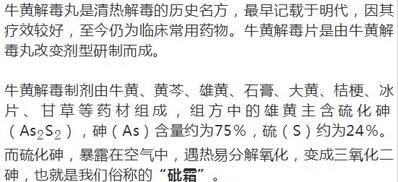 一直有一些长痘痘的朋友把研碎后的牛黄解毒片敷在脸上祛痘。先不说祛痘效果如何,砷化物却可以通过皮肤进入体内,同样会造成中毒!