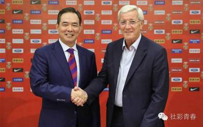 中国足球协会主席蔡振华(左)和马尔切洛·里皮
