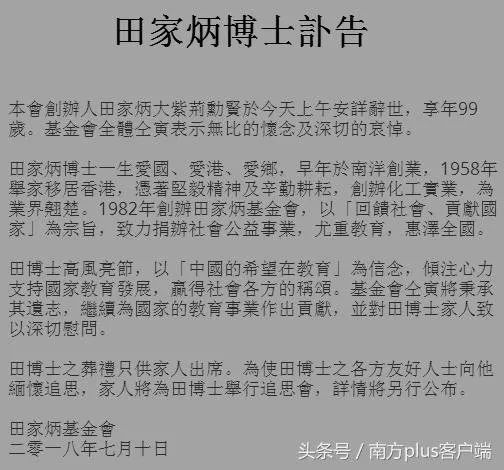 香港慈善家田家炳上午辞世享年99岁 |有的人值得永远被铭记