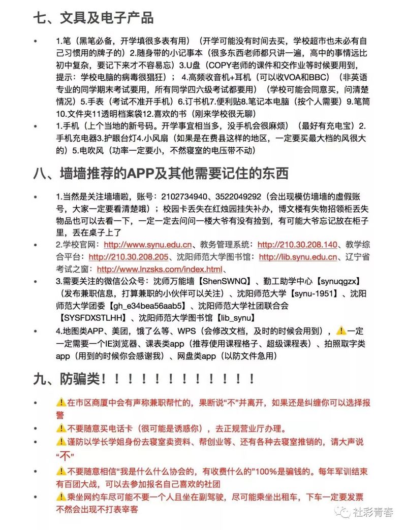 【社会·迎新】萌新必备沈师旅(kai)行(xue)攻略