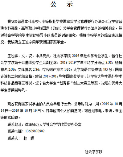 【社•公示】国家、辽宁省政府奖学金公示