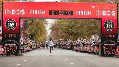 9.当地时间12日,肯尼亚选手基普乔格以1小时59分40秒的成绩跑完马拉松,成为人类史上首个2小时内完成马拉松的运动员。