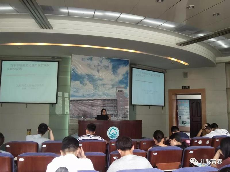 然后,詹娜老师为同学们介绍了非物质文化遗产代表作入选的文化标准与组织标准以及文化空间的相关内容和非物质文化遗产的濒危性。詹娜老师还展示了辽宁省的第一批国家级非物质文化遗产的名录,并通过谭振山老师等人的一些例子让在场的同学们更加了解非物质文化遗产。