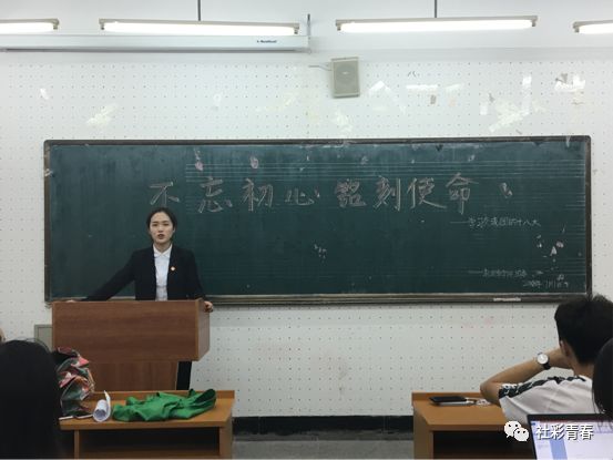 会议伊始,李璐瑶同学向大家介绍了十八大会议背景,共青团十八大是在中国特色社会主义进入新时代召开的一次重要会议,是全国各族团员青年政治生活中的一件大事。这次大会将进一步动员广大团员青年,高举习近平新时代中国特色社会主义思想伟大旗帜,全面贯彻党的十九大精神,为决胜全面建成小康社会、全面建设社会主义现代化国家、实现中华民族伟大复兴的中国梦努力奋斗。