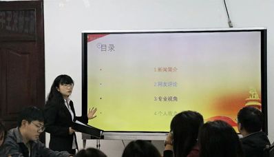 选手新闻讲解之后,主持人与观众进行互动,让观众发表自己的看法,周鹏同学对崔雪莉事件发表自己的看法,他认为我们有责任关爱抑郁症群体,抵制网络暴力。而代明辰同学表示对高架桥事件引发的一系列后果的沉痛之情,号召大家遵纪守法,减少此类事件的发生。路萍同学则对言论自由方面呼吁大家严于侓己,宽以待人。