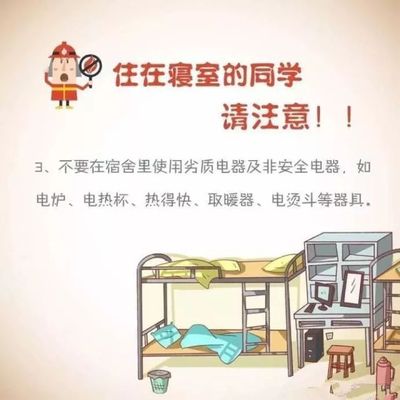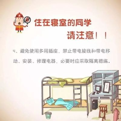很多宿舍都存在乱拉电线、一个插座接出多个插线板等情况,长此以往,容易造成电线漏电、短路起火。为了确保安全,不要随意改动宿舍里的电源线路、私拉电线、使用劣质插线板。