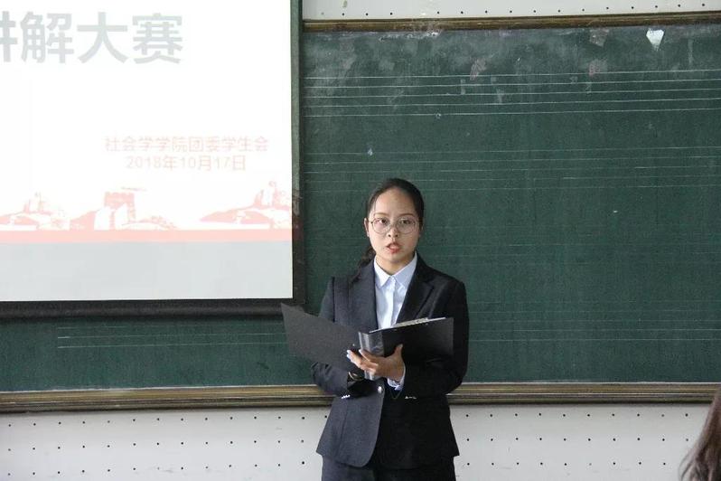 讲解“浅淡假死骗保案”的四号选手肖文鹏首先表达了对当事人假死骗保导的不赞同,然后又分析了当事人假死导致妻子携二女自杀背后的原因,通过“陷贷款泥潭”、“假死骗保”、“妻儿殉情”三个情节,使整个新闻的思路变得更加清晰。五号选手宋梓晴一上场,就以洪亮的声音吸引了大家的注意,她以最近微博热点“马云,辞职了!”为讲解内容,结合网友评论及生命历程理论这两方面,分析马云辞职这一做法的原因及影响。各位选手虽是初次接触社会学专业知识,但仍认真查阅并对新闻进行理性剖析,从对新闻的自我认知出发,客观分析并收集他人看法,最终得出结论。