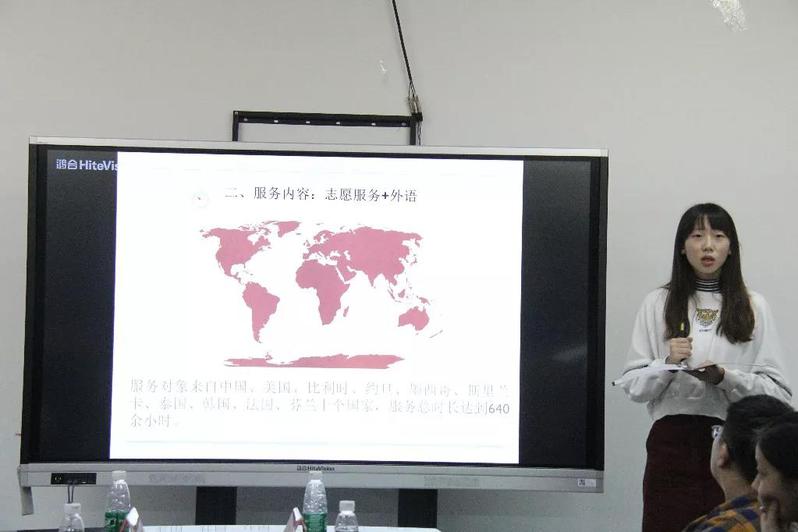最后上场分享的榜样是万里晴同学,她拥有丰富的志愿经历,并指出中国的青年一代正摆脱冷气向上走,作为世界公民应该为更好的社会、更好的世界付出不断努力。万里晴同学向大家分享了自己做国际义工的经历。最后,她强调做志愿工作要契合自己的专业,在活动中不断汲取营养,提高自己的能力。