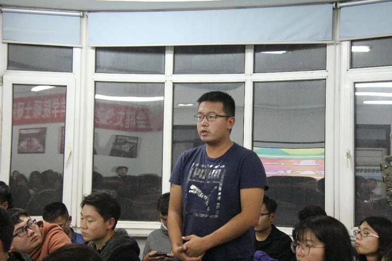 分享会伊始,由林德一同学为大家带来他的经验分享。他以幽默诙谐的演讲方式简要介绍了自己的老员工活,所参与的竞赛活动及其学习成绩等。林德一同学首先指出学习的重要性,无论是做志愿活动、科学研究,专业知识是基础。他还提出青年要担起责任,要以“爱国,励志,求真、力行”为信条,坚持德智兼备,知行合一。最后,他强调了心态的重要性并告诫我们在老员工活中不论遇到何事都应该保持一颗平常心,并送给大家一句话:道虽远,不行不至,事虽难,不为不成。
