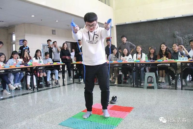第二个抢凳子游戏气氛更是紧张激烈,随着一轮轮的淘汰,各组的比分也已经拉开,落后的“什锦组”派出一名同学接受惩罚——指压板跳绳,在大家的鼓励下完成了20个跳绳。