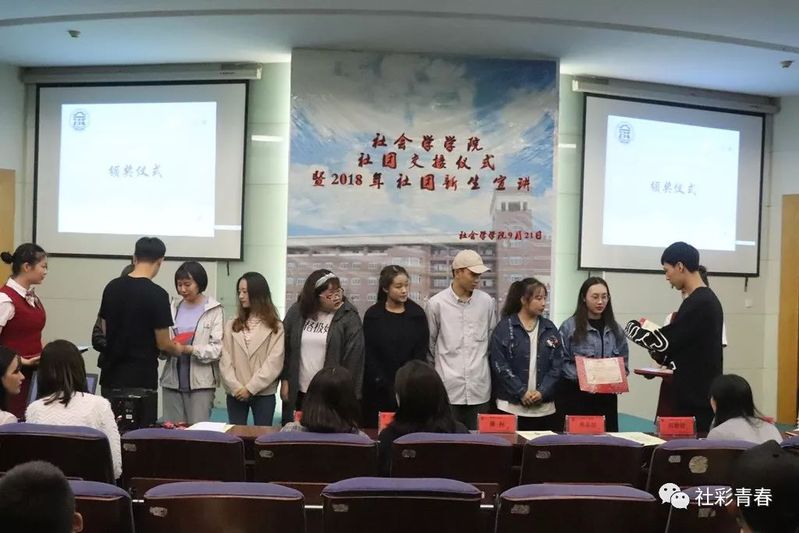 接下来,由嘉宾们为各社团的负责人们颁发聘书。
