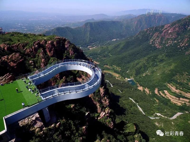 9、近日,世界最长玻璃环廊在河南郑州伏羲山落成,并对外开放。玻璃环廊距离峡谷地面360米,环廊伸出悬崖30米。