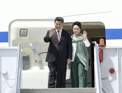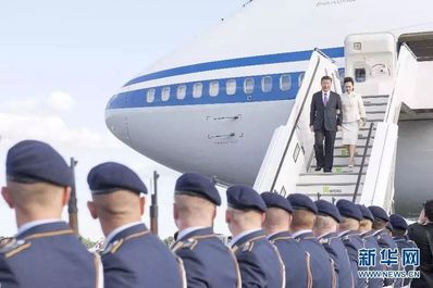 2017年7月4日,国家主席习近平对德意志联邦共和国进行国事访问,习近平和彭丽媛手挽手走下舷梯。