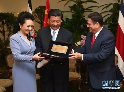 2013年6月3日,中国国家主席习近平和夫人彭丽媛在哥斯达黎加首都圣何塞市接受该市市长阿拉亚授予的圣何塞城市钥匙。