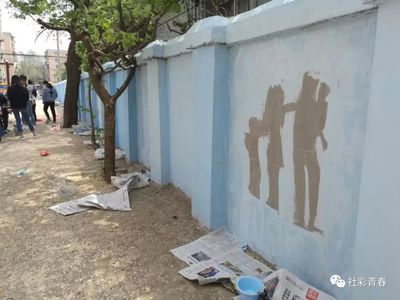 志愿者们首先在需要绘制的墙面下边铺上废旧报纸,以免颜料弄脏地面影响整洁。随后,拿起刷子及颜料对墙面进行粉刷。志愿者热情高涨,嘴里哼着:“我是一个粉刷匠,粉刷本领强……”,手中的动作不停,将一面面墙壁刷成天蓝色。在粉刷的过程中,虽然颜料时常会被崩溅到衣服上、头发上甚至脸上,虽然太阳炙烤着大家的皮肤,可志愿者们毫无怨言,依然全力涂刷着墙壁。在志愿者两个半小时的共同努力下,长达80米的墙壁涂刷完毕,让人耳目一新,社区居民纷纷驻足观看。