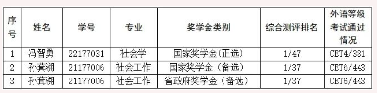 2023-2024学年国家奖学金、省政府奖学金初审结果的公示