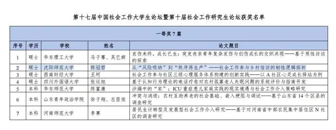 论文《从“风险吸纳”到“秩序再生产”——社会工作参与乡村信访的韧性逻辑探析》由王丽丽老师指导,陈冠哲同学以东北乡村信访治理为案例,提出社工可通过风险前置识别、弹性缓冲和内生秩序重构,将冲突转化为治理动力,推动基层治理从刚性控制转向动态平衡。这一理论框架的核心价值在于,将看似对立的冲突有效转化为基层治理的推进动力,推动治理模式从传统的刚性管控向更具韧性的动态平衡跃升,为乡村振兴中的治理难题提供了“社工方案”。
