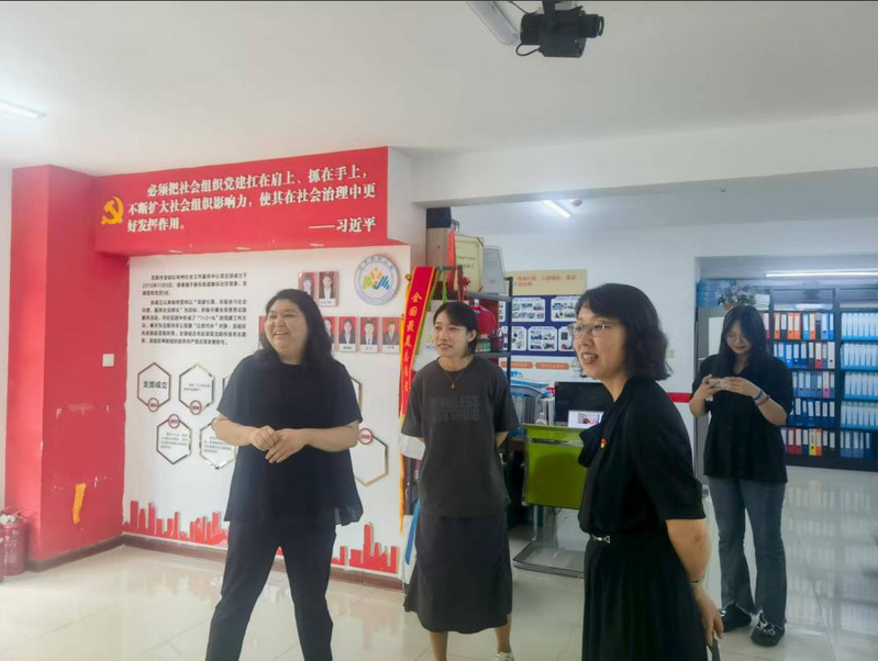 随后,一行人来到铁西区弘善社会工作服务中心运营的铁西区青少年空间,实地参观了公益托管教室、多功能活动厅及个案辅导室、读书角等场地。座谈中,弘善社会工作服务中心理事长陈月娇详细介绍了沈师实习生的参与情况:除公益托管外,同学们还深度参与青少年成长小组活动设计等工作,在与青少年沟通、活动组织等方面员工展现出较强的亲和力与专业方法运用能力。青少年空间全程配备监控录像,结合服务场景特点,双方重点排查了托管课程中的秩序维护、户外活动安全、特殊儿童照护等风险点,针对实习员工增加“儿童青少年行为干预”的实训内容达成共识。