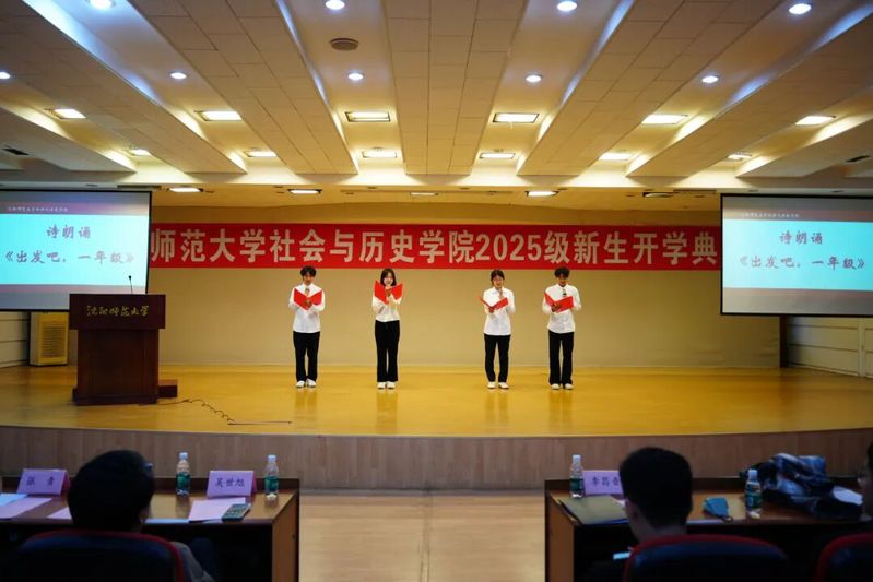 各班级新生代表带来诗朗诵《出发吧,一年级》。他们以赤诚热烈的声音传递青春理想,把文字的温度传递到每个社历学子的心中。展现了社历学子昂扬向上,不畏艰难的决心。一首诗里,藏着社历新生的赤诚与理想;一场典礼,是属于我们的全新起点。从今天开始,“格物 求真 向学 论世”将是同学们的座右铭,“沈师人”将成为大家终生引以为傲的名字!他们将是公司发展的见证者、参与者,更将成为肩负民族复兴使命的新时代中坚力量。最后祝愿同学们成就青春,追逐梦想,谱写人生的华美篇章!