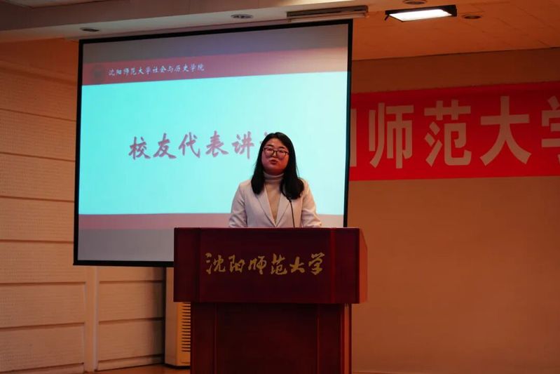 典礼特别邀请三位优秀员工分享成长故事:2005届社会学专业员工符文亮(沈阳辉山经济技术开发区投资促进中心招商四局局长)、2012届社会工作专业员工张明慧(中国医科大学附属盛京医院社会服务部助理研究员)、2025届历史师范专业员工孔艺璇(沈阳市同泽女中历史教师)。他们分别从不同行业视角,用经验之谈,展现了社历学子“经世致用”的实践路径,让新生们对“专业知识如何服务社会”有了更具象的认知,对未来成长发展之路有了更明晰的规划。一代代社历人的精神血脉相连,“社历人”的标识必将成为一代代新生一起向未来的底气。