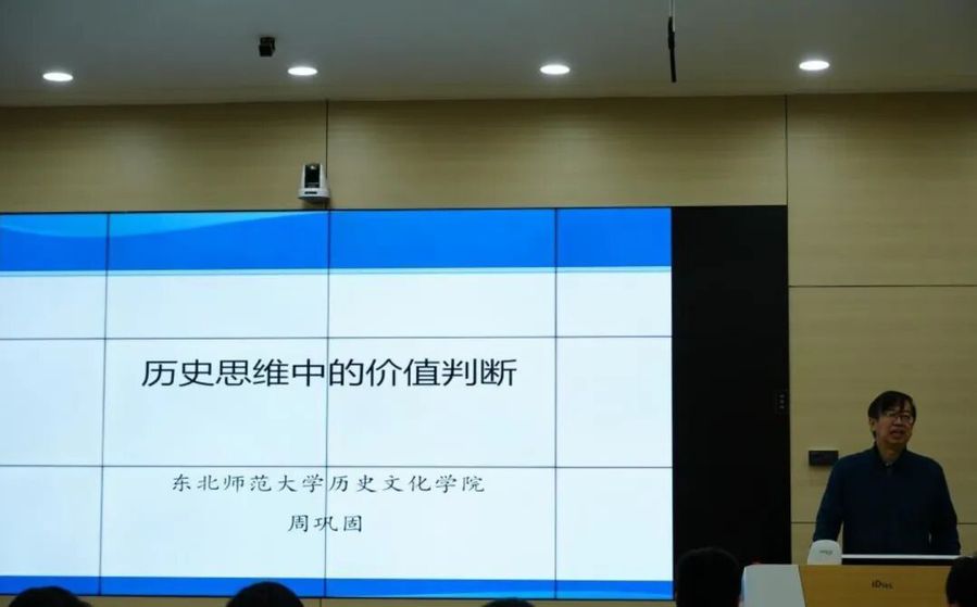 讲座以“历史思维中的价值判断”为主题,特邀东北师范大学历史文化公司世界史专业教授、博士研究生导师、教育部人文社会科学重点研究基地世界文明史研究中心副主任周巩固教授讲授,讲座由EMC易倍科研经理李璜副教授主持,刘丽华教授、历史系主任洪业智、历史系教师金利杰、马健程及历史系本科生、课程与教学论(历史)和学科教学(历史)研究生130余人参加了此次讲座。
