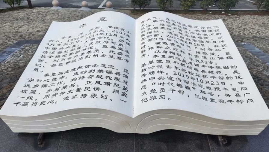 李夏纪念广场建成于2021年5月,位于安徽省绩溪县荆州乡。广场分为事迹展示区和缅怀纪念区两大部分。事迹展示区通过图片展示李夏同志事迹,位于广场中央的缅怀纪念区,保留了在“利奇马”台风中损毁的古树,旁边的书本石雕刻印着李夏同志生平事迹。